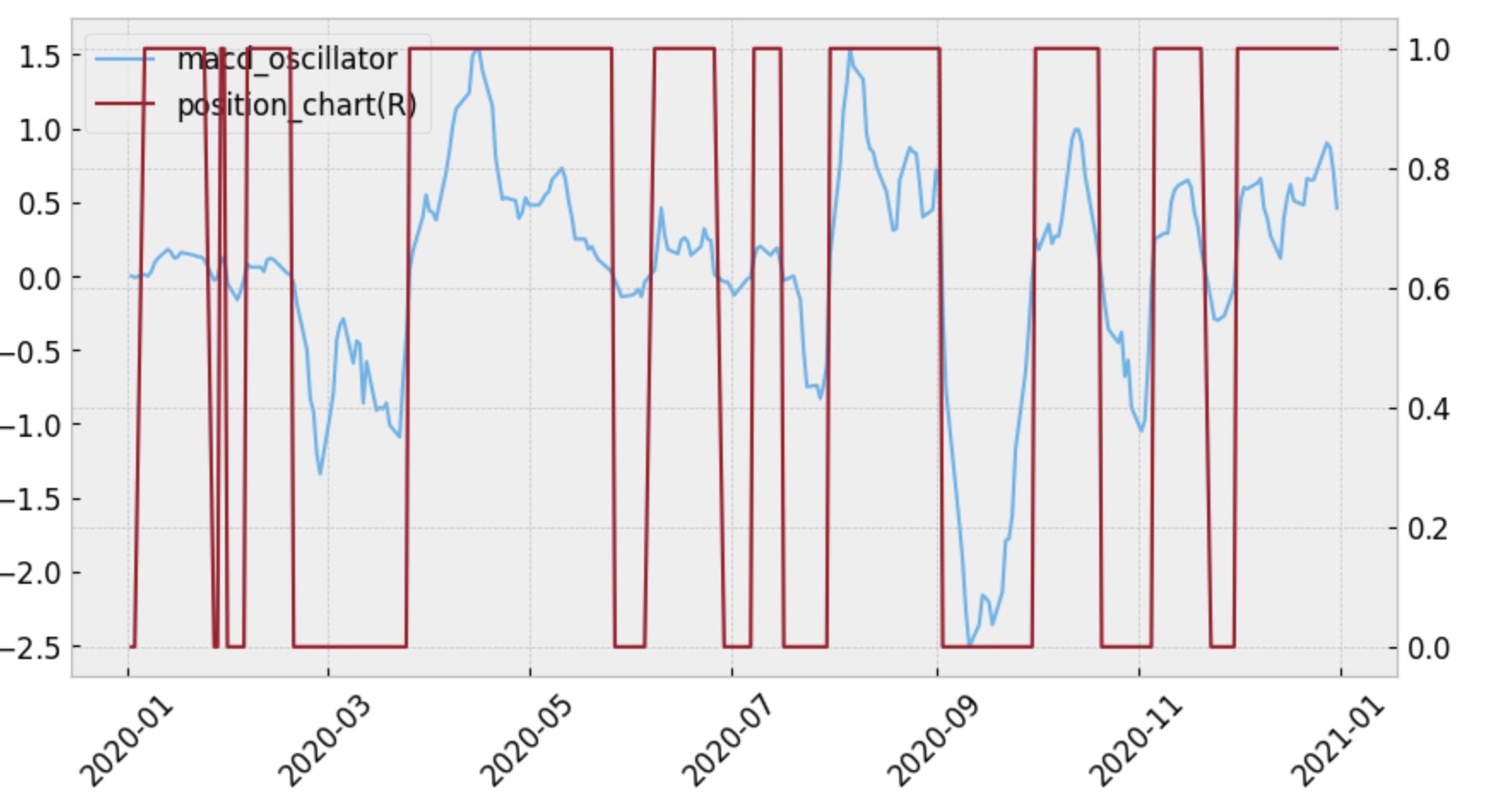 매수 포지션은 포지션 그래프가 위에 1이면 매수, 아래 0이면 매도 포지션이다.